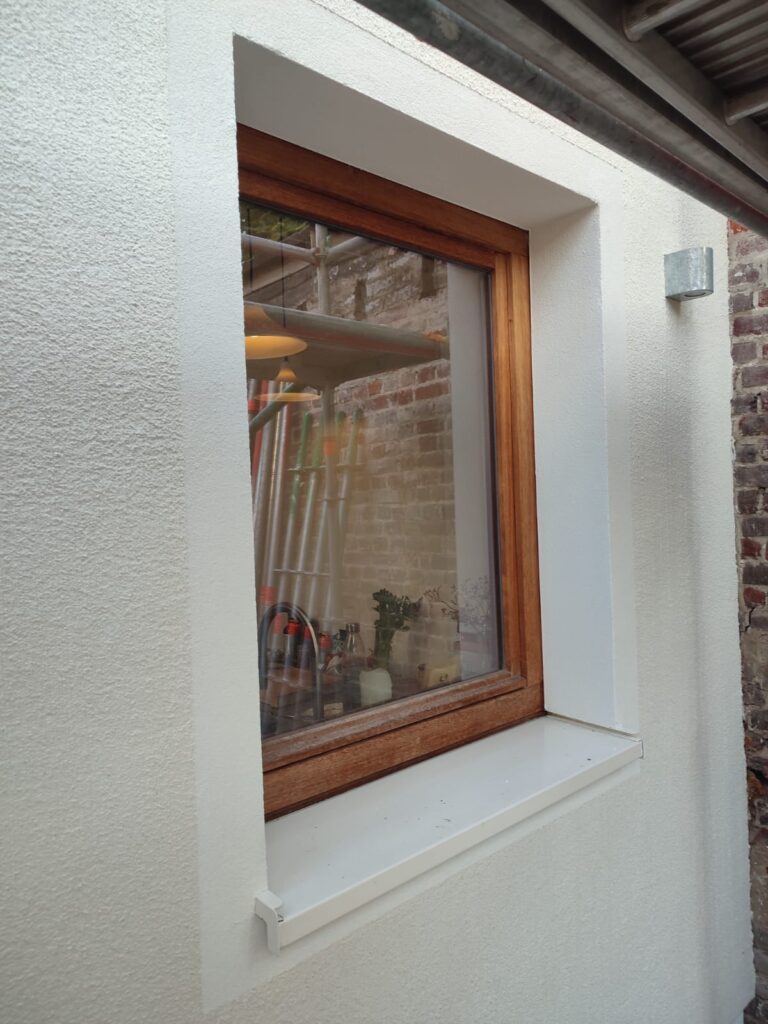 De steenlook bootst een bakstenen gevel na die afgewerkt is in de kalei. Het enige verschil is dat er geen steen geplaatst is om deze afwerking te bekomen. De kostprijs ligt dan ook beduidend lager in vergelijking met een gemetste muur of steenstrips.